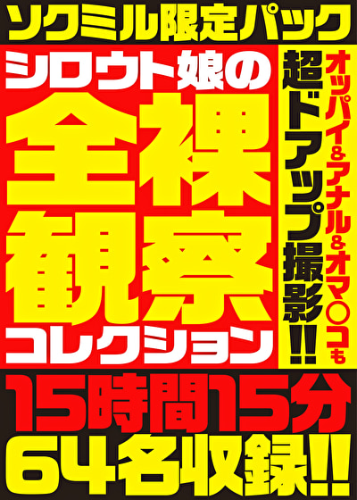 【ソクミル限定パック】シロウト娘の全裸観察コレクション オッパイ&アナル&オマ○コも超ドアップ撮影!! 15時間15分64名収録!!|品番448961│ノリマサ工房 2026.01.06 発売日 : 2024-04-05収録 : 915分シリーズ : ソクミル限定パック ジャンル : 素人 局部アップ オムニバス HD(ハイビジョン) メーカー : サルトル映像出版 レーベル : ノリマサ工房 品番 : 448961価格 : ¥594~